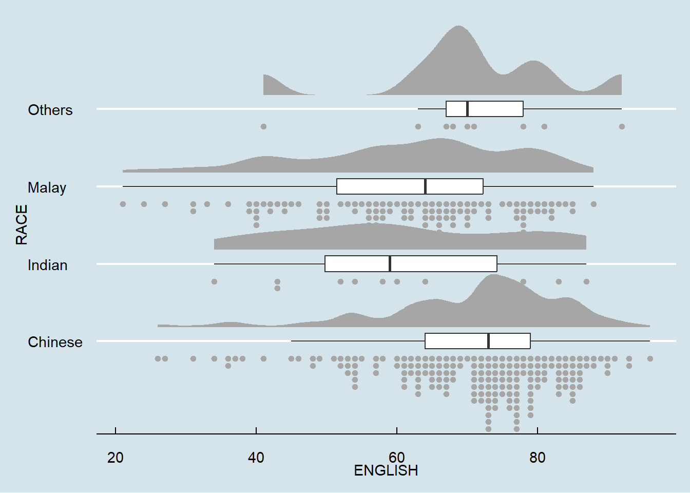 Raincloud Plot produces a half-density to a distribution plot.