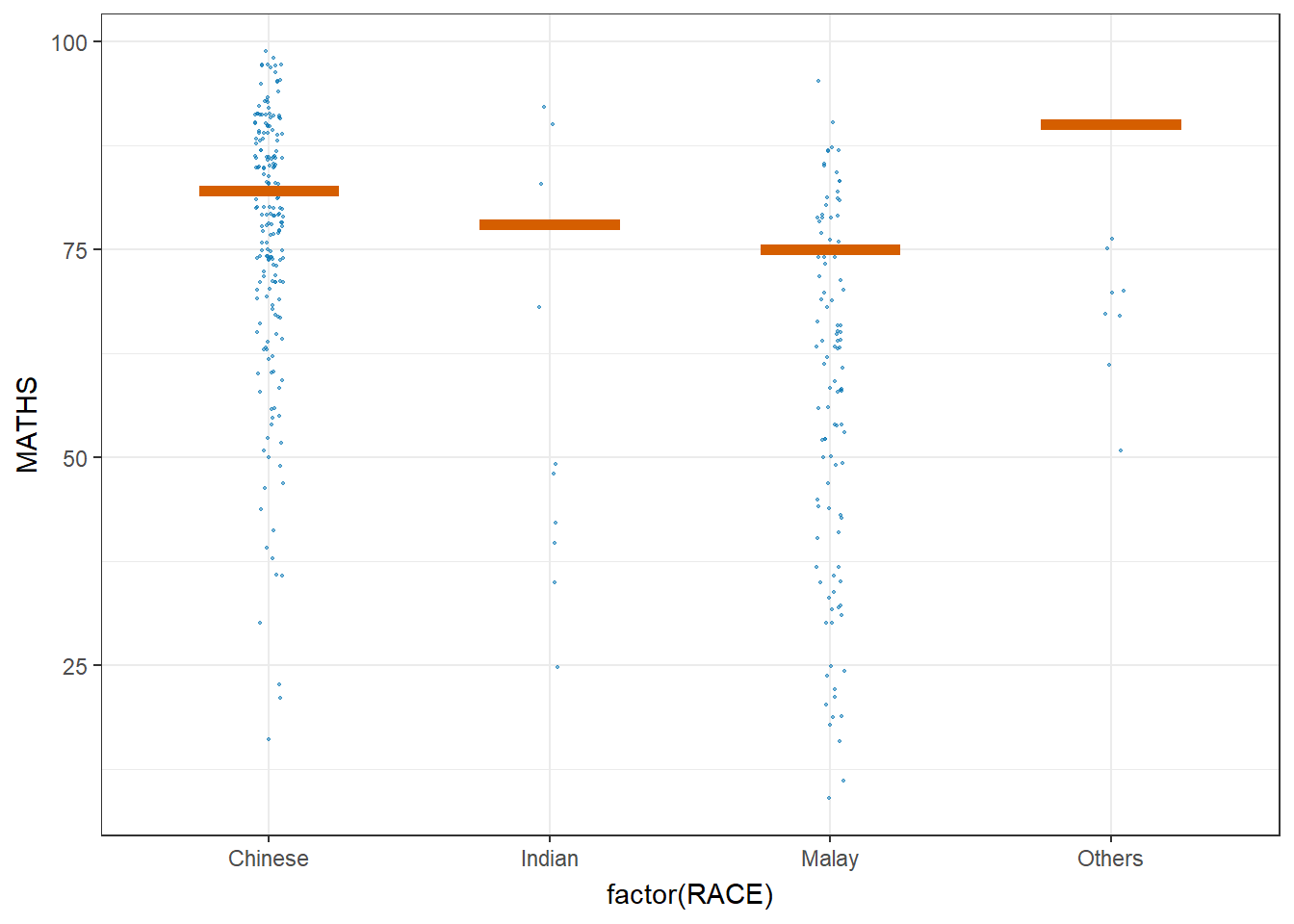 (aes(x = factor(RACE), y = MATHS))) +