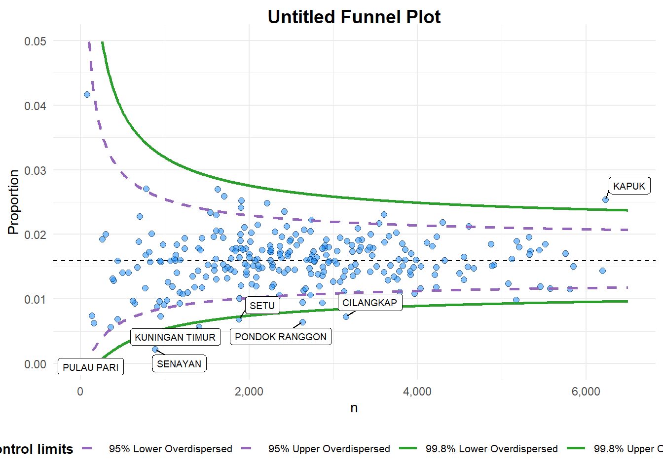 6.2.1 FunnelPlotR methods: The basic plot